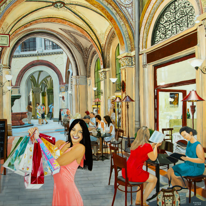 Beide Gemälde sind in Acryl auf Leinwand in einer Größe von 120 x 120 cm gemalt und stellen den Kontrast dar, der zum Alltag in unserer Gesellschaft gehört. Der Müll, den unsere Konsumgesellschaft und Wegwerfgesellschaft erzeugt, dient als Lebensraum derjenigen, die ausgebeutet werden, um uns den Konsum zu ermöglichen.